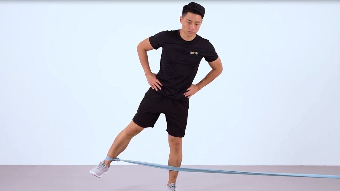 Movement: Place one section of the elastic band over some stationary object and the other over the back of your foot, lifting your foot to the side.