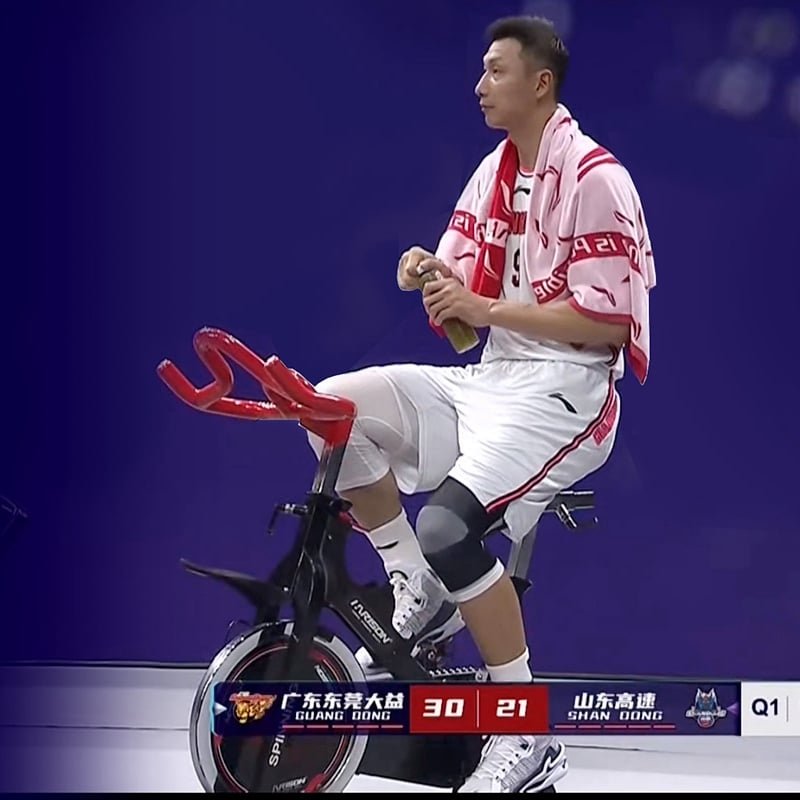 CBA Player Yi warms up with the HARISON B2800 stationary bike