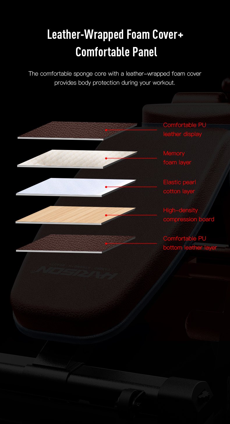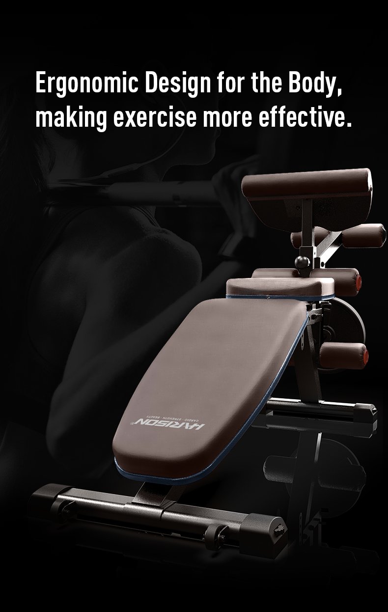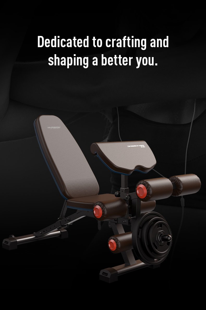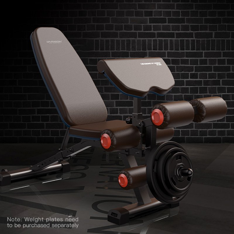 HARISON HR-609(BROWN) Adjustable Weight Bench with Leg Extension and Preacher Pad, Flat Incline Decline Exercise Bench for Home Workout Weight Training