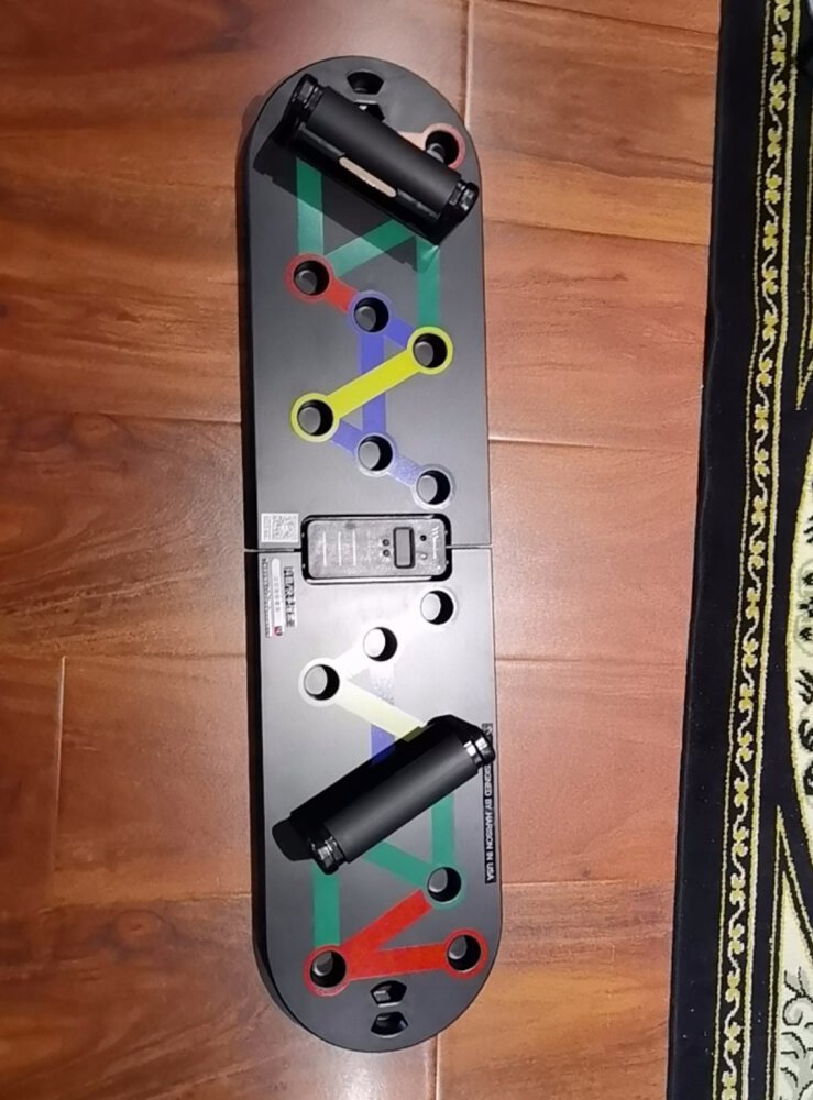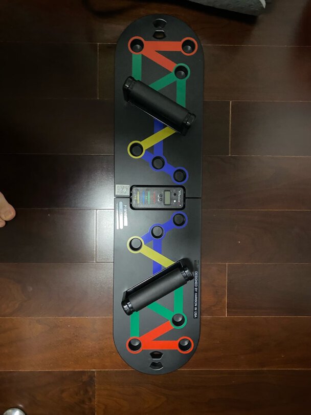 I bought this because of the reviews, so it was only fair for me to leave one as well. I was so impressed by this equipment. I am so tired after doing push ups all over the place on this thing. There is a chart that came with it that even gives combos to try with each hand in a different position. The board itself is color coded, so you dont even have to look at the chart to figure out what areas you want to hit. It’s simple, but it is high quality. The handles lock in tight and do not wobble at all while you are using it. I love this, it is well worth the $50. If you are considering purchasing this but are on the fence, believe me you can trust the reviews.