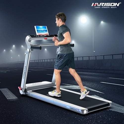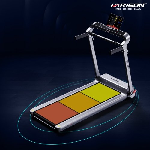 New Release and Exclusive Design! HARISON Running machine uses the unique 180 degrees folded platform design to create the True foldable Treadmill, The folded thickness is 9 inch and the area is less than 2.15 square Ft. with convenient transportation wheels, you can easily move this treadmill or easily fold for upright storage or laid flat under the bed or sofa. Perfect for compact home or office use.