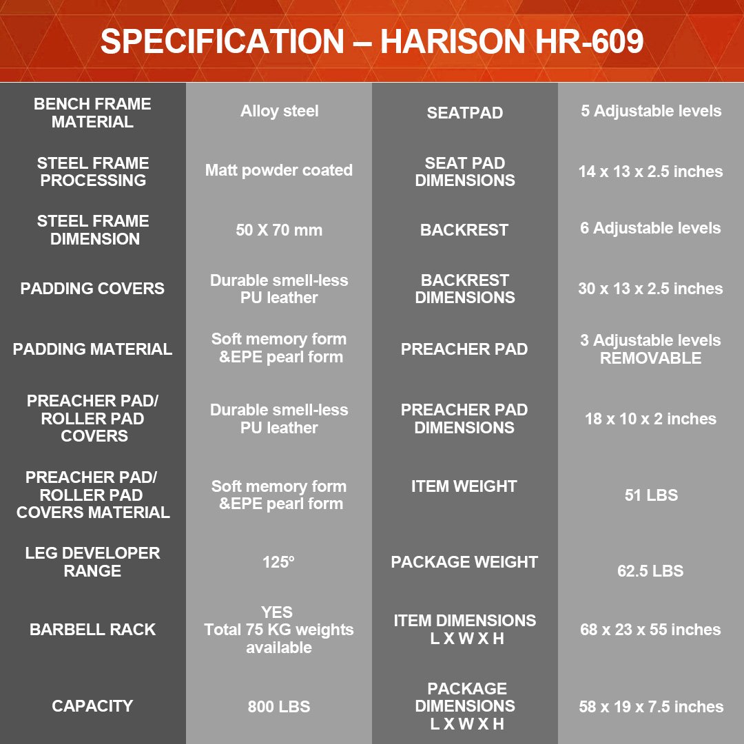 I haven’t trained in a gym for three years and wanted to setup a home regime. After careful scrutiny, I selected the Harison Weight Bench. I was forewarned that it was going to take some time to receive the bench and that was alright from my perspective. The bench came in by UPS and it appeared to be in good order. Upon moving the heavy-duty carton and then opening it — I readily realized that this weight bench was going to be MUCH BETTER than anticipated! The sheer weight of each component was exceptional (I am 6’2″ and weigh 225 lbs). The assembly directions were excellent and easily followed (all tools were included). The bench was larger than what I thought it was going to be and I was thrilled! My headline reads “Solid as a Rock!” — hopefully, I too will become worthy of a similar headline!