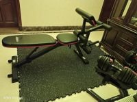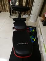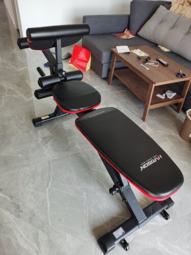 The product is good quality and able to manage my husband and son’s routine. My reason for 4 stars is the adjustable knob for uneven surfaces does not really make a difference in leveling. The adjustable feature was the main reason that I bought this product. Also, the free product was not sent with the bench.I had an issue with the pin to lock the bench in place. I contacted Harison and they immediately agreed to sent a replacement pin (delivery in transit).Great customer service with an immediate reply and quick resolution.
