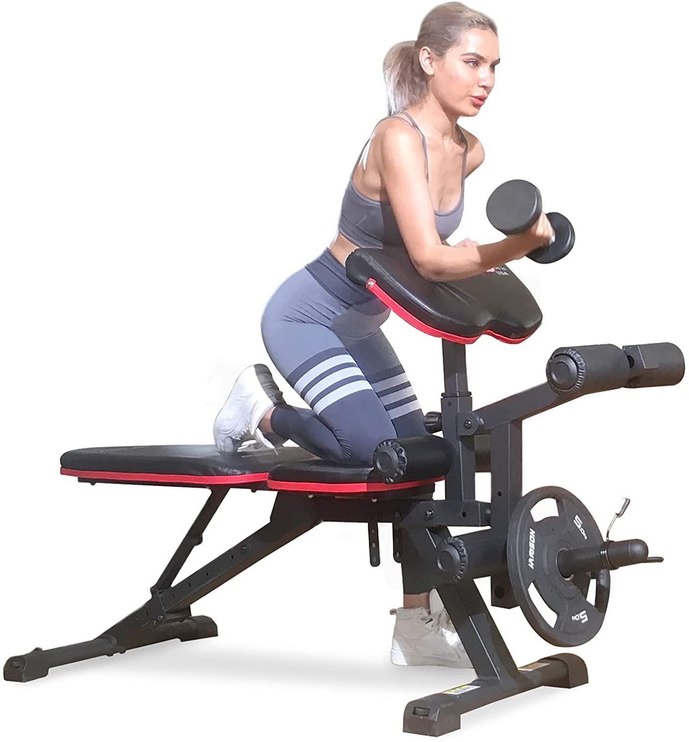 This is my second weight bench. I don”t think you could find a better non-commercial bench. It has welds where most of the other cheaper benches have bolts, the sponge roller pads are covered with a vinyl/leather style wrapper and not just the sponge rubber unprotected. The bench pads are firm and seem pretty durable, and they give me good support. When the preacher pad is easily taken off ( it has a spring pin and tightening knob rather than the removable and losable pin) I get full motion on leg extensions and curls. The only minor irritant is I have to remove the leg attachment to use the preacher pad for arms, but that’s normal for an all-in-one weight bench. I’m 6’2″ and have no problem using the bench. The only complaint I have is that I thought I was going to get a set of pushup handles free but they charged me. I just returned them.