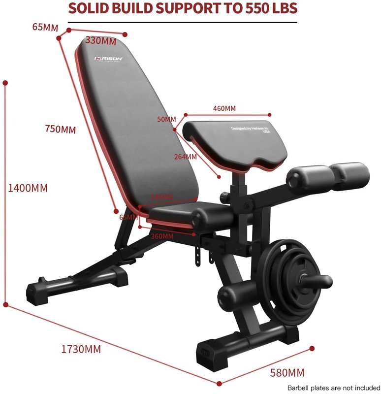 I haven’t trained in a gym for three years and wanted to setup a home regime. After careful scrutiny, I selected the Harison Weight Bench. I was forewarned that it was going to take some time to receive the bench and that was alright from my perspective. The bench came in by UPS and it appeared to be in good order. Upon moving the heavy-duty carton and then opening it — I readily realized that this weight bench was going to be MUCH BETTER than anticipated! The sheer weight of each component was exceptional (I am 6’2″ and weigh 225 lbs). The assembly directions were excellent and easily followed (all tools were included). The bench was larger than what I thought it was going to be and I was thrilled! My headline reads “Solid as a Rock!” — hopefully, I too will become worthy of a similar headline!